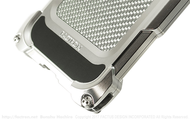 ジュラルミンの輝きを大切に、手仕上げで磨き上げています。シルバーシルクの光沢が美しい、リアルシルバーカーボンのバックパネル。 表面処理をお選びください。 ■ジュラルミン素地---傷やサビが付いた場合、市販の金属磨きクリーム等でお手入れをすると、何度でも輝きが戻り長くお使いいただけます。 ■透明アルマイト加工---傷やサビに強くなりますが、細かな傷等がついた場合、磨くことはできません。また、全体的に白っぽくコーティングされます。