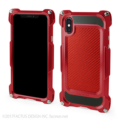 落ち着いた輝きの美しいレッド。 サビや傷に強いアルマイト加工です。 シルクのようなツヤのレッドリアルカーボンのバックパネル。