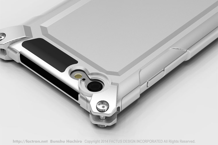 ジャケットの素材は、航空機等でも使用されるジュラルミンA2017(アルミ合金)を使用。金属の光沢感を最大限に引き出すよう に、ひとつひとつ手仕上げで磨き上げました。