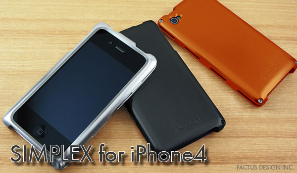 FACTRON史上もっともシンプルな SIMPLEX for iPhone4 は、素材の魅力を十分に引き出すデザインに仕上げました。シンプルなだけでなくすんなりと手になじみ、かつ機能的な形状は、デザイナーの緻密なデザインと高度なモデリング技術がなせる技です。